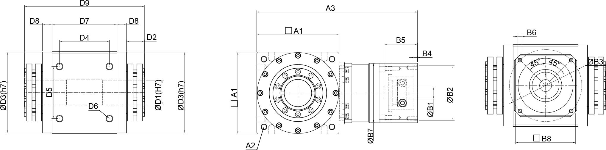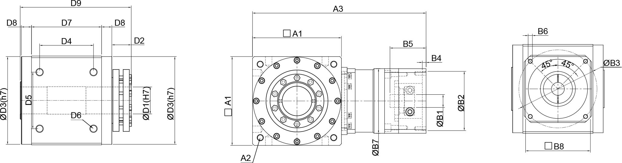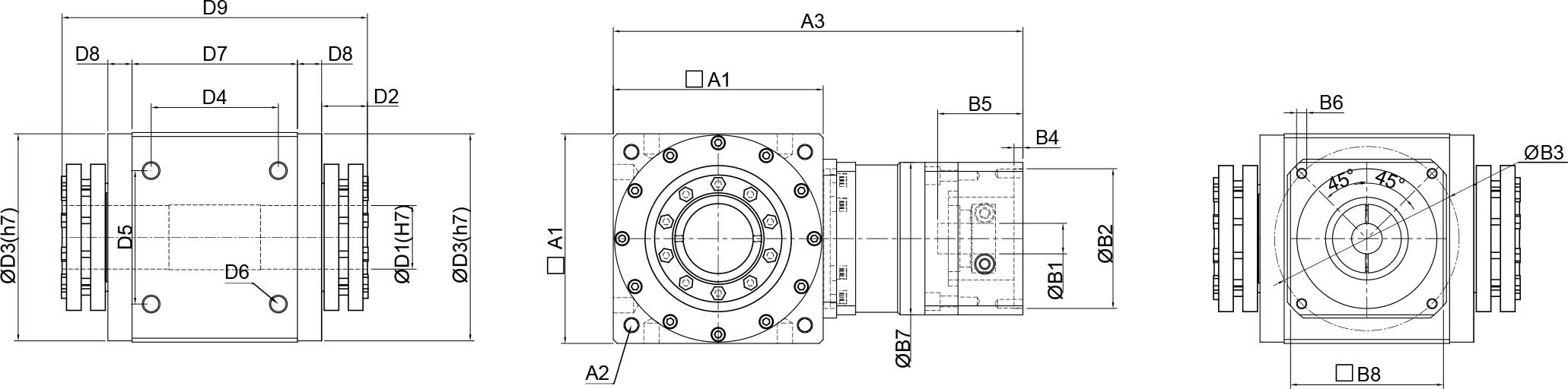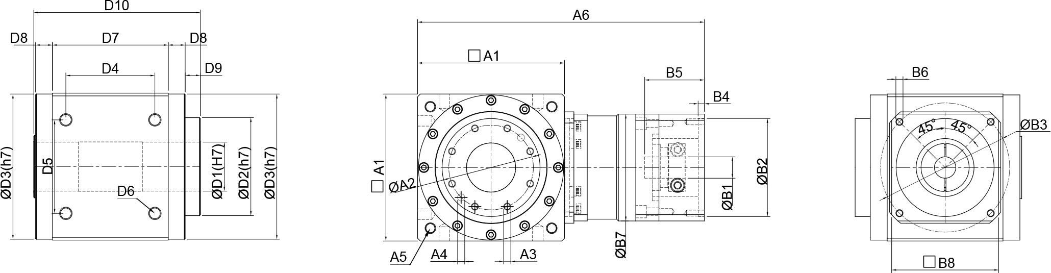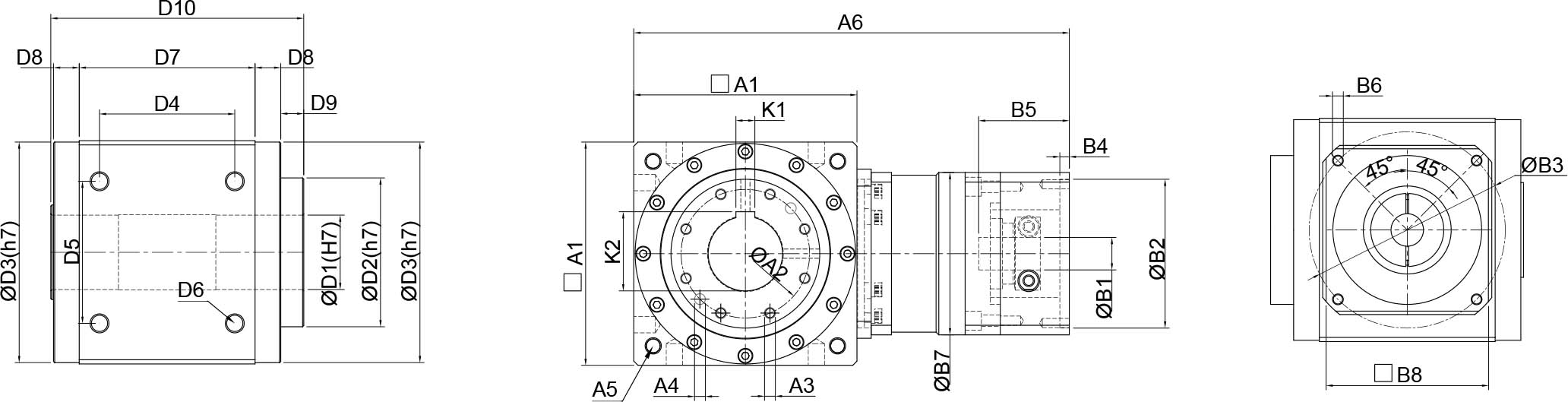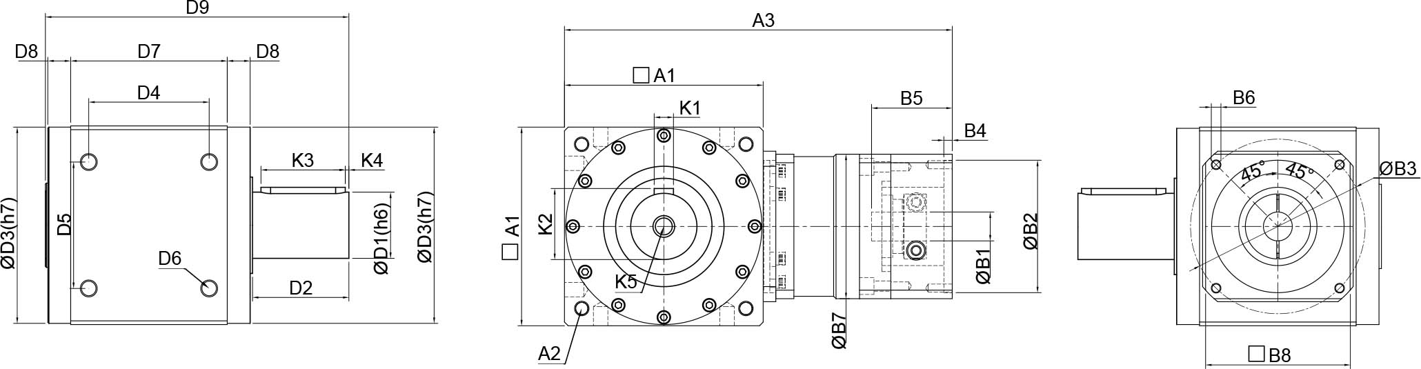 | 技术参数 | 单位 | 减速比 | BPTSW045 | BPTSW070 | BPTSW080 | BPTSW110 | BPTSW135 | BPTSW165 | BPTSW200 | BPTSW250 |