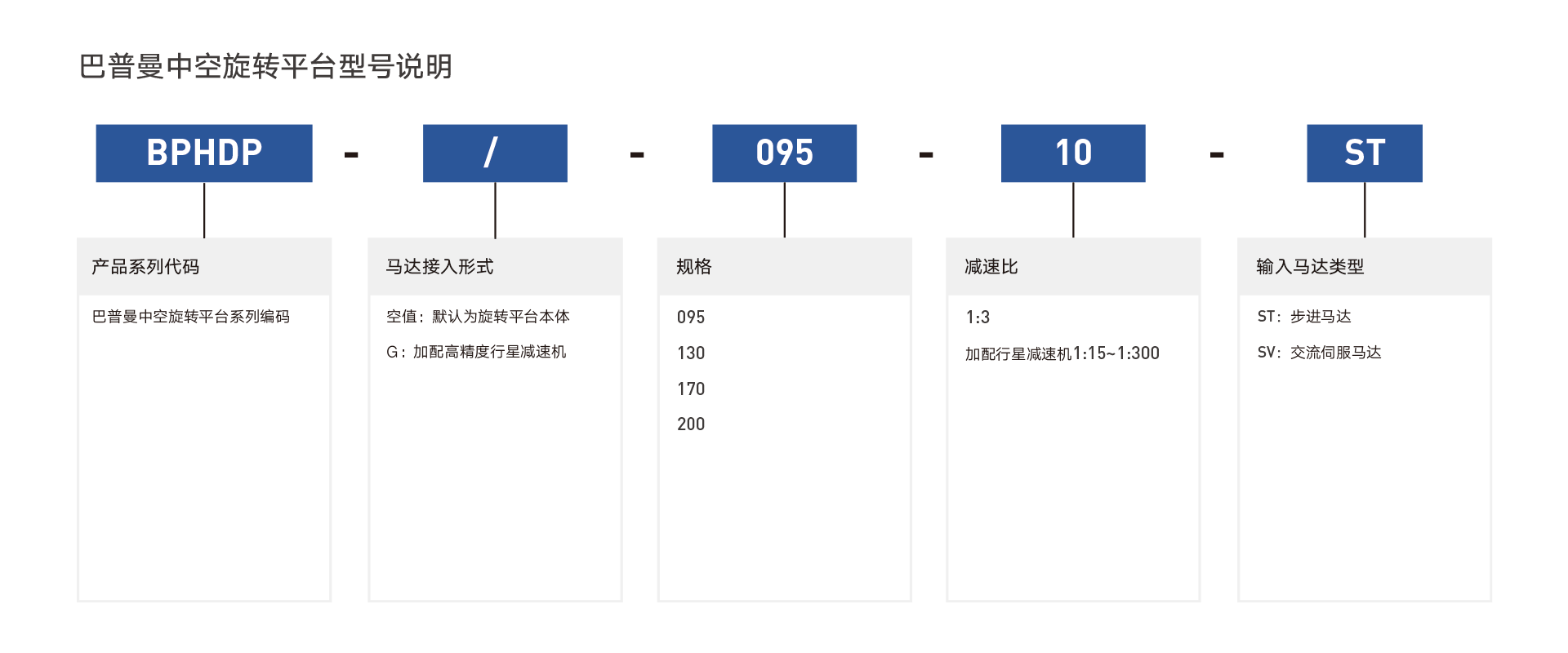 | 规格 | 减速比 | i | BPHDP095 | BPHDP130 | BPHDP170 | BPHDP200 | |