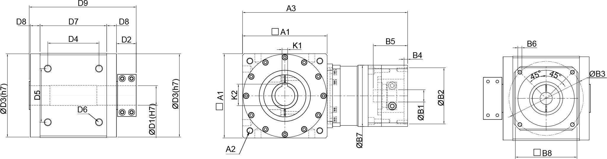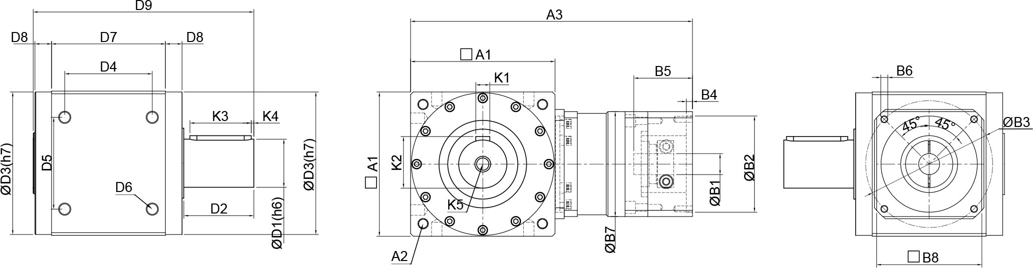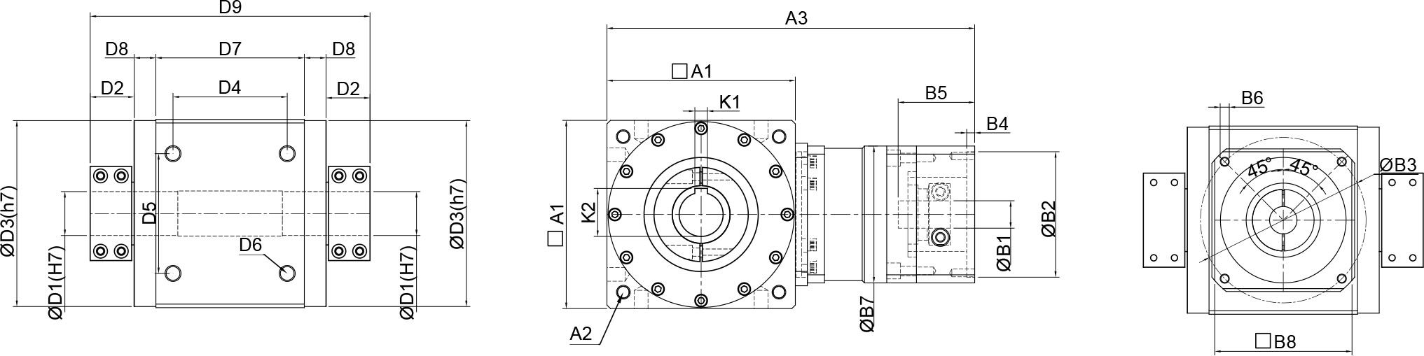 | 技术参数 | 单位 | 减速比 | BPTAW045 | BPTAW070 | BPTAW085 | BPTAW105 | BPTAW125 | BPTAW150 | BPTAW180 |