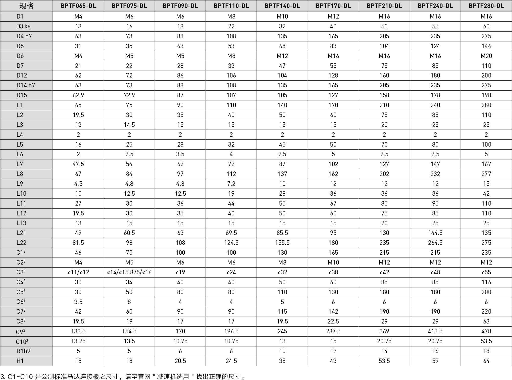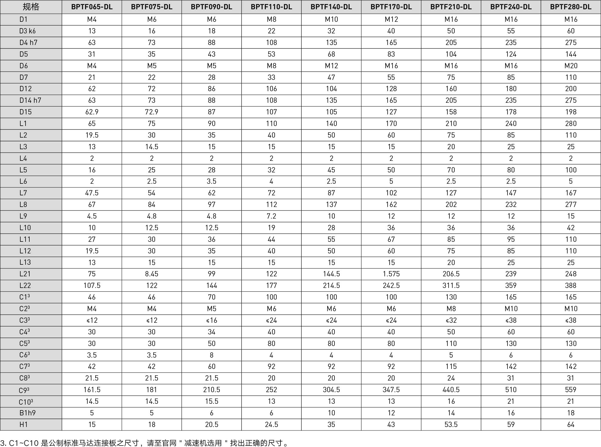 技术参数段数减速比BPTF065BPTF075BPTF090BPTF110BPTF140BPTF170BPTF210BPTF240BPTF280