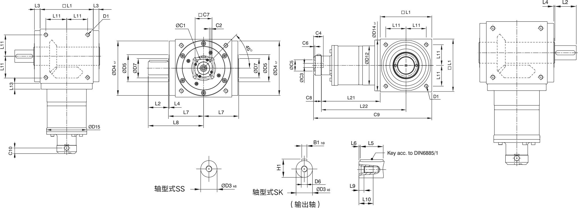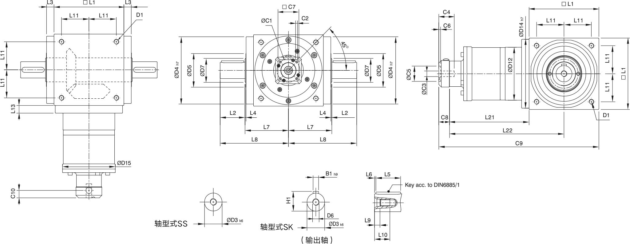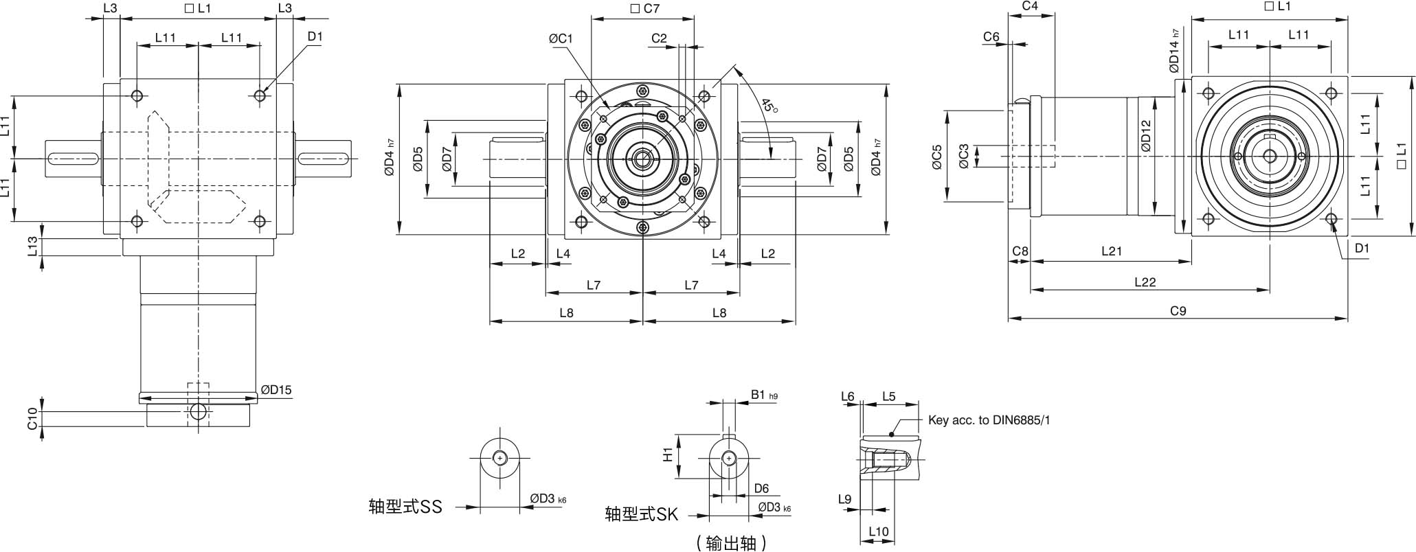 容许轴向力(输出轴)L1~L3N450550850135024003300575085009000