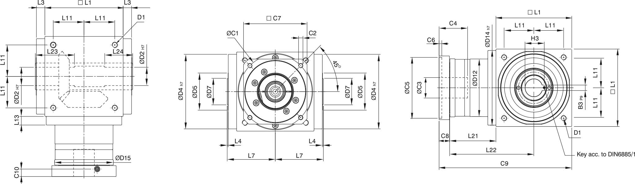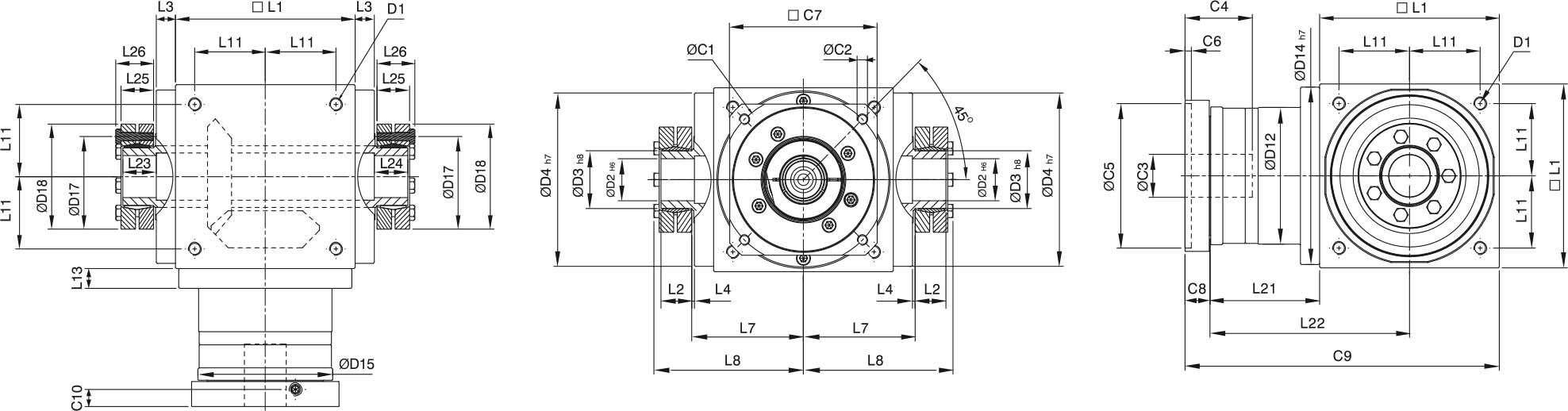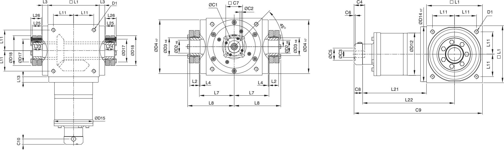 容许轴向力(输出轴)L1~L3N450550850135024003300575085009000