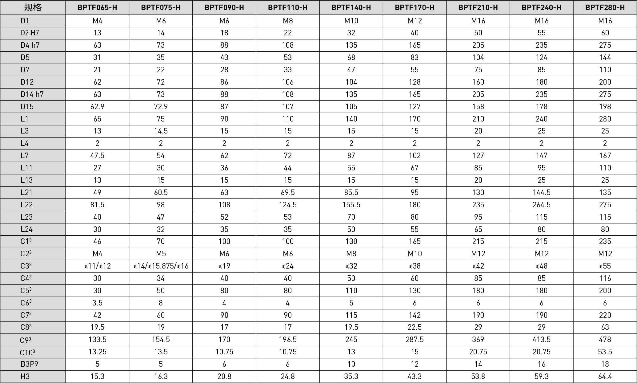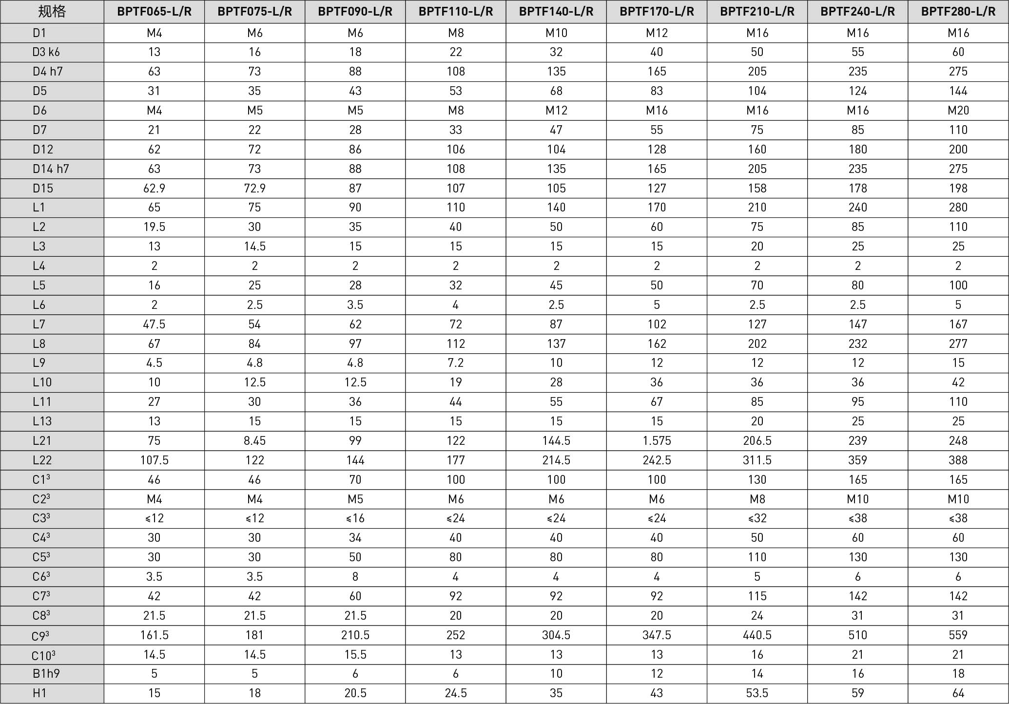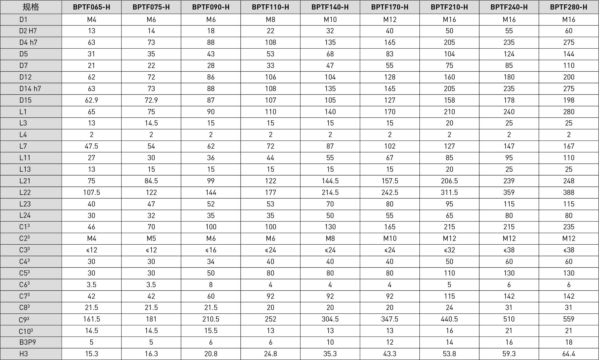 技术参数单位减速比BPTF065BPTF075BPTF090BPTF110BPTF140BPTF170BPTF210BPTF240BPTF280