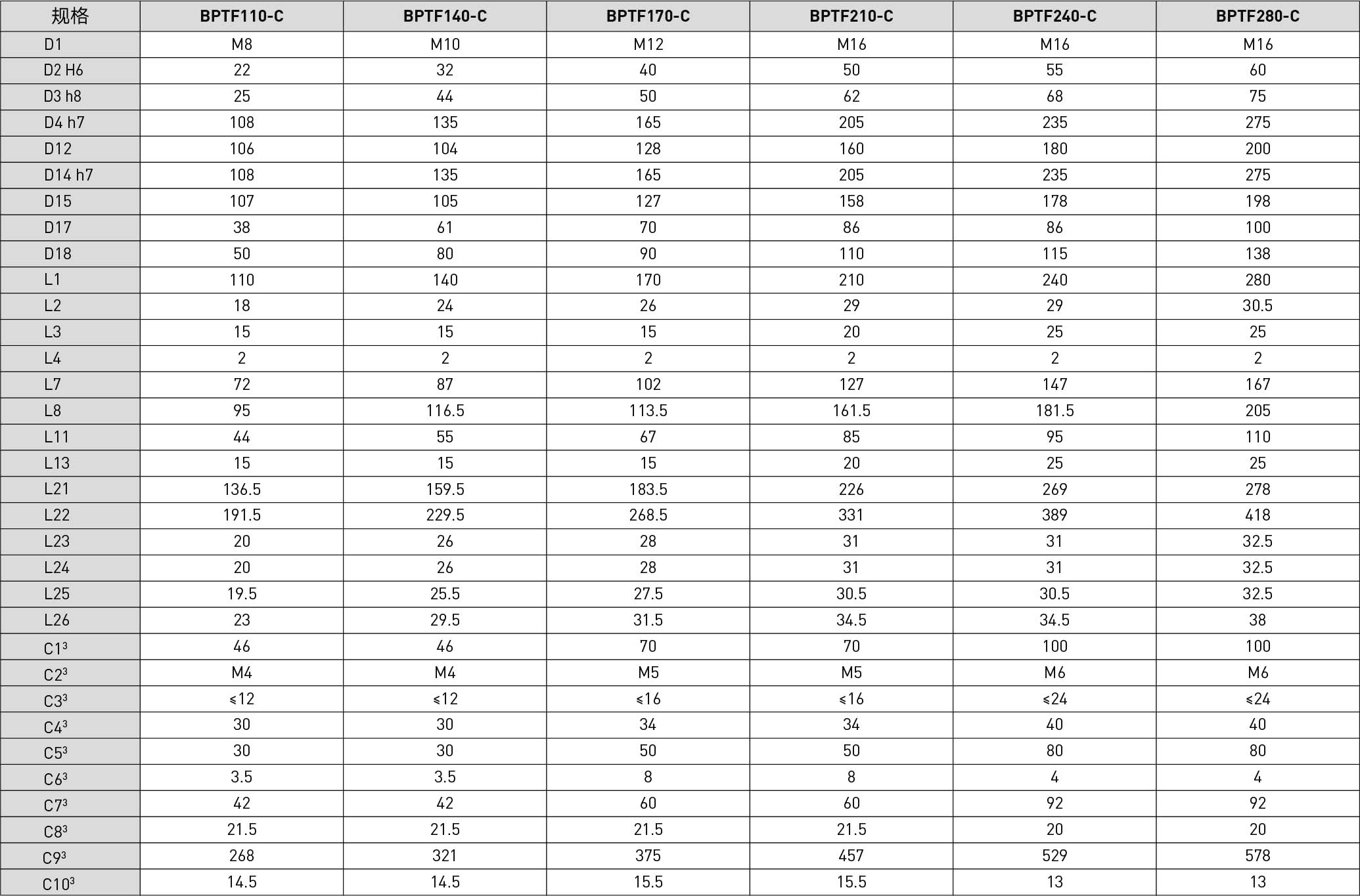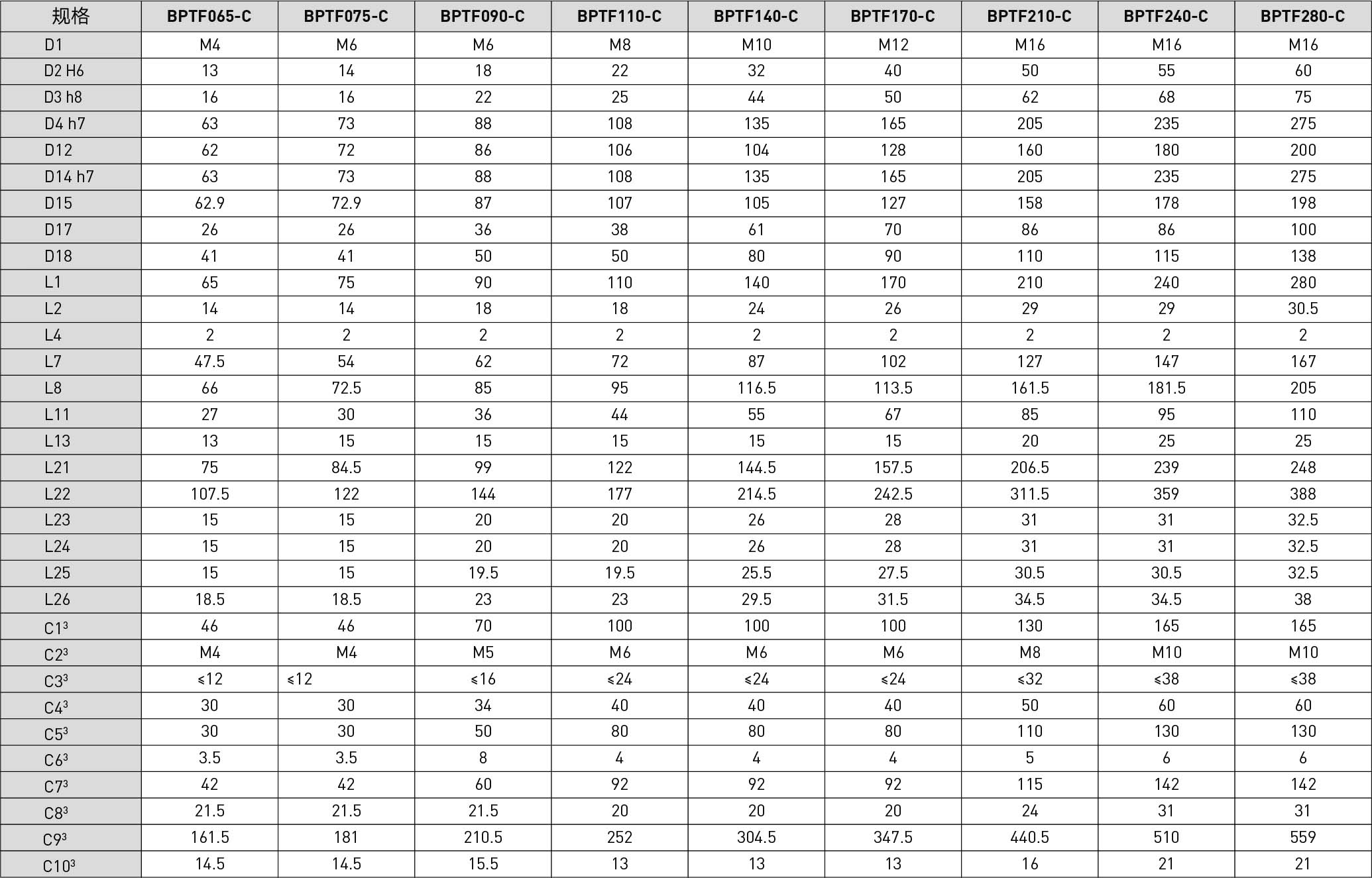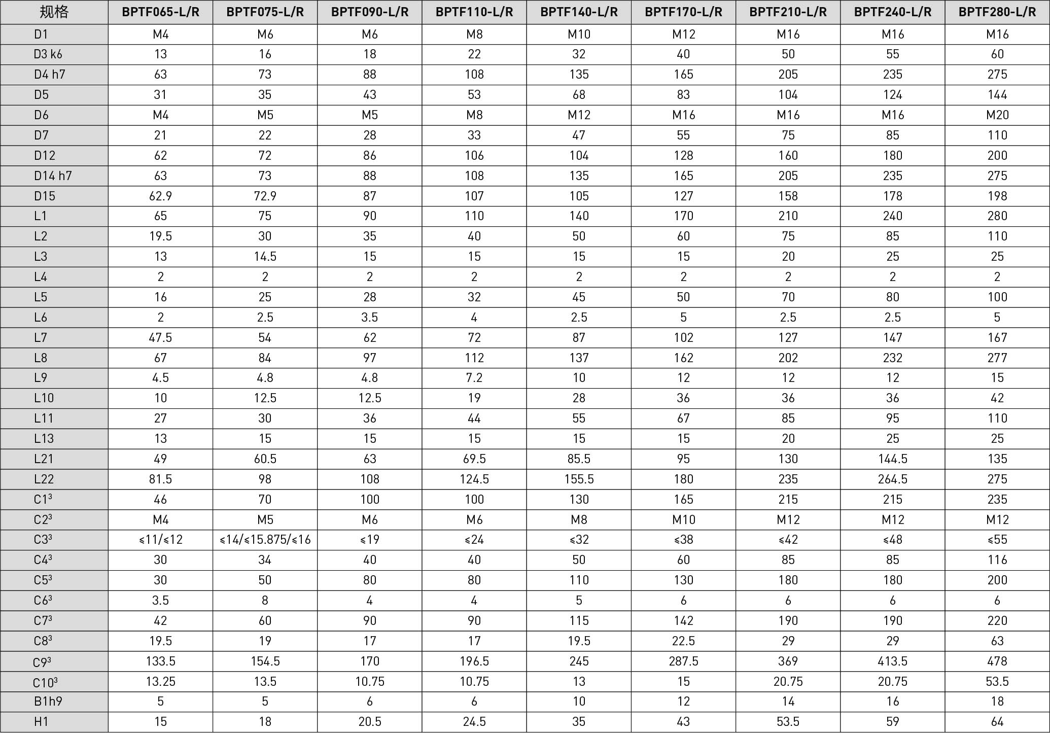 技术参数单位减速比BPTF065BPTF075BPTF090BPTF110BPTF140BPTF170BPTF210BPTF240BPTF280